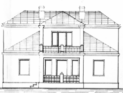 Projekt i budowa domu sięgają1935 roku (zachował się stary szkic domu), dom znajduje się cały czas w rękach jednej rodziny. Budynek jest murowany, piętrowy, częściowo podpiwniczony, strych nieużytkowy. Powierzchnia mieszkalna domu wynosi ok. 180m2 (100 m2 na parterze plus ok. 80m2 na piętrze), plus piwnica plus strych.